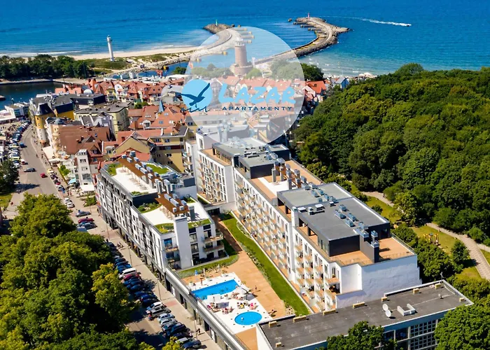 The beachfront Lazar Apartamenty Nadmorskie Tarasy is situated in the Dzielnica Uzdrowiskowa district, at a distance of 850 metres from Ukryta Kraina Amusement Center, which is higly recommended for a family visit. Around a 25-minute walk from New Old Town, this apartment includes a heated pool as well as a steam room, a Jacuzzi, and a sauna.